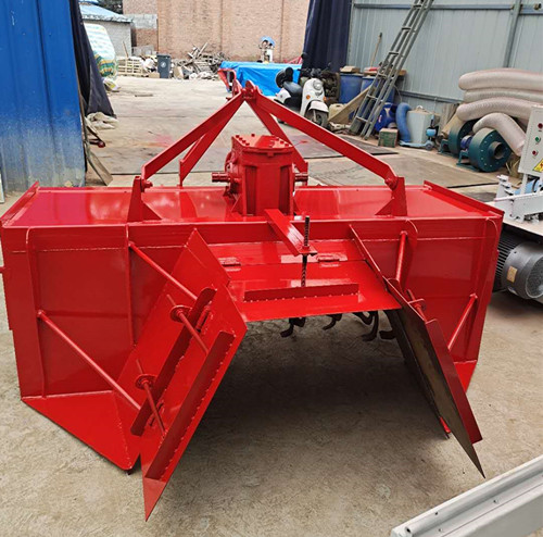 山東菏澤曹縣魯富機械公司研發生產的新款葛根起壟機,高低可調,起壟高度30-50寬窄可定做。起壟機是由拖拉機輸出軸驅動的機具。拖拉機與起壟機連接后,拖拉機的動力經傳動輸出軸、萬向節總成傳至中間傳動箱總成的小錐形齒軸,經過一對小錐齒輪減速并改變方向。刀具隨刀軸轉動自地面從上向下切削土壤,由于拖拉機的前行,旋轉的刀片不斷切入未耕土壤,切下的土塊被拋向后方,并與罩殼、托板想撞擊,進一步破碎再落到地面。由于起壟刀是扇形,將切碎土塊想中間壟起,然后形成壟溝。
