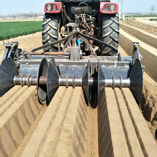 山東菏澤魯富機械公司生產的大型紅薯起壟機,一次可出三個壟子,大壟雙行的種植方式適合土壤肥沃和松軟的地區,產量也更高。壟的高度在30-35厘米,間距在90-120厘米,薯苗的間距以25-30厘米為宜。可根據紅薯的品種要求,調整密度。一般來講,每畝可達到4000棵。咨詢電話:15054691199 13954097171