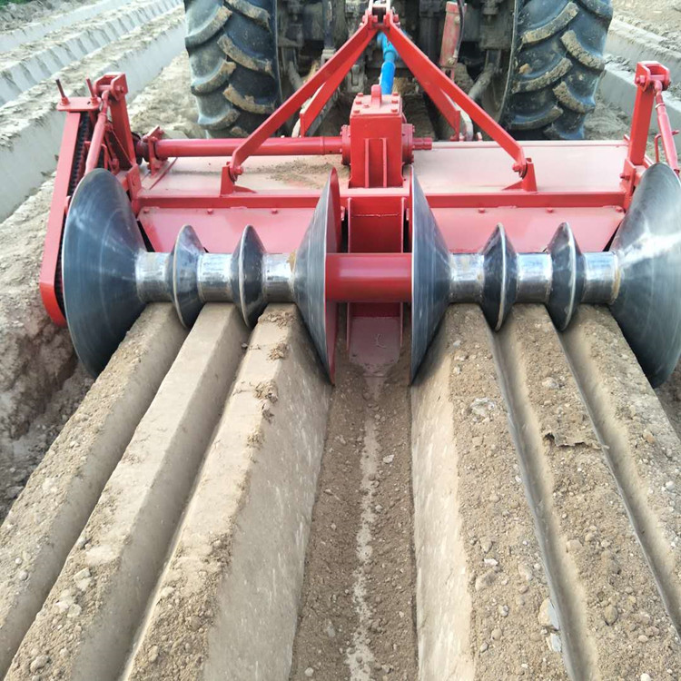 新型雙壟精整地機配套80馬力以上拖拉機,其結構特點是整機剛性好,工作可靠。由于耕幅大于所配套的拖拉機外緣,耕后無輪胎壓痕,所以地表平整,覆蓋嚴密,工效高,油耗低。