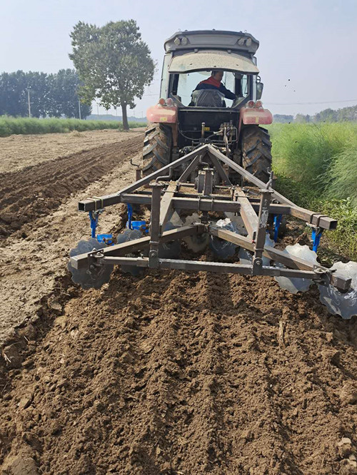 21年山東菏澤曹縣新款無(wú)墑溝大犁廠家批發(fā),本實(shí)用新型式一種無(wú)墑溝懸掛犁,包括深和平墑器機(jī),平墑器設(shè)置在深耕犁尾部,深耕犁包括雙橫梁犁架,雙面犁鏵,連接件,單面犁鏵,限深輪,雙橫梁犁架上橫向設(shè)置有橫梁,雙橫梁犁架左右兩側(cè)設(shè)置有限深輪,雙橫梁犁架前端設(shè)置有雙面犁鏵,橫梁上固定有連接件,連接平墑器,是深耕后無(wú)墑溝,無(wú)需人工平墑,大大節(jié)省了履帶力,節(jié)約種植時(shí)間。得到廣大農(nóng)戶(hù)一致好評(píng)!
